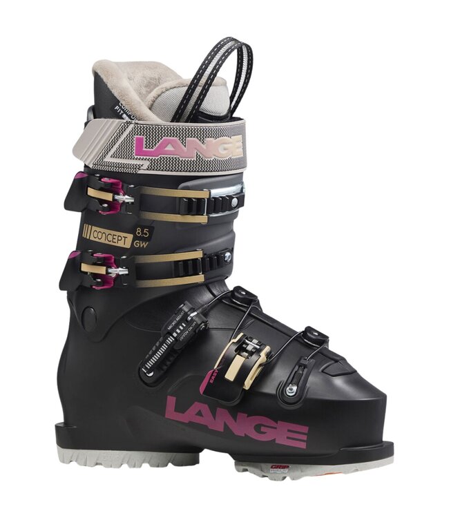 Women’s Lange Concept 8.5 ski boots with 103 mm comfort fit, adjustable 85 flex, Easy Entry design, Dual Core, GripWalk® soles and heat-moldable liner. Read more.